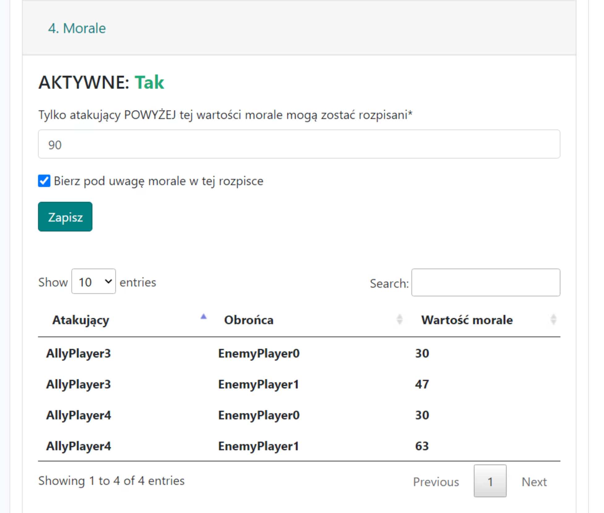 Die Registerkarte dient zur Steuerung der Moralwerte bei der Planung von Aktionen.