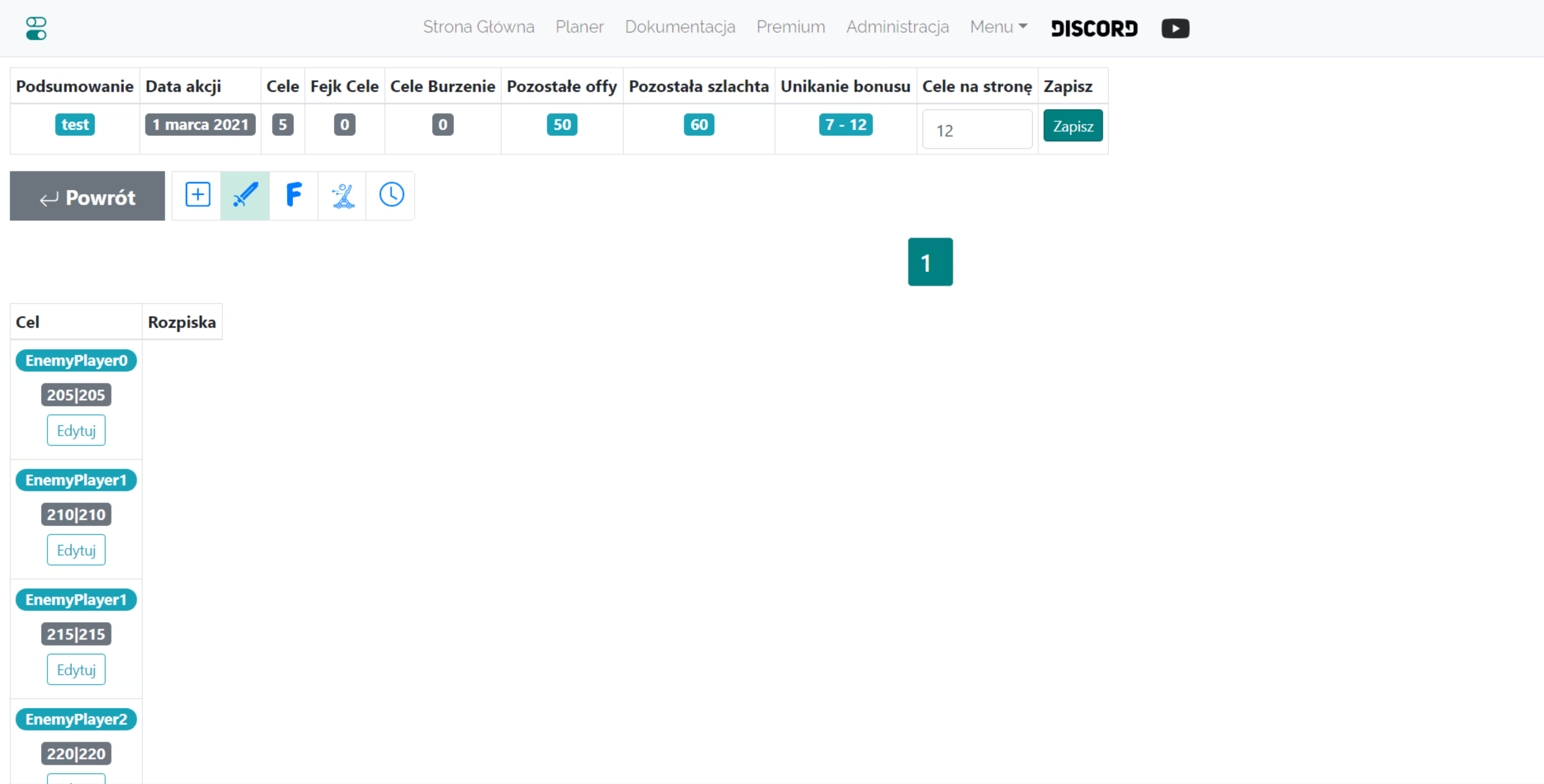Oben ist dargestellt, wie ein Ziel in der Anfangsphase des Spiels aussehen könnte, 2 Offs am Anfang, dann 4 Adelsgeschlechter. Denken Sie daran, dass nach dem Hinzufügen von Truppen ihr Status in allen Zielen aktualisiert wird (mit anderen Worten, es ist gut programmiert, Sie werden nicht mehr Truppen planen, als die Spieler maximal besitzen). Nachdem Sie alle Ziele geplant haben, gehen Sie zur Registerkarte Zeiten auf die bereits aus der Testwelt bekannte Weise, legen Sie die Eingabezeiten fest, schließen Sie den den Plan ab und senden Sie den Spielern ihre Ziele.