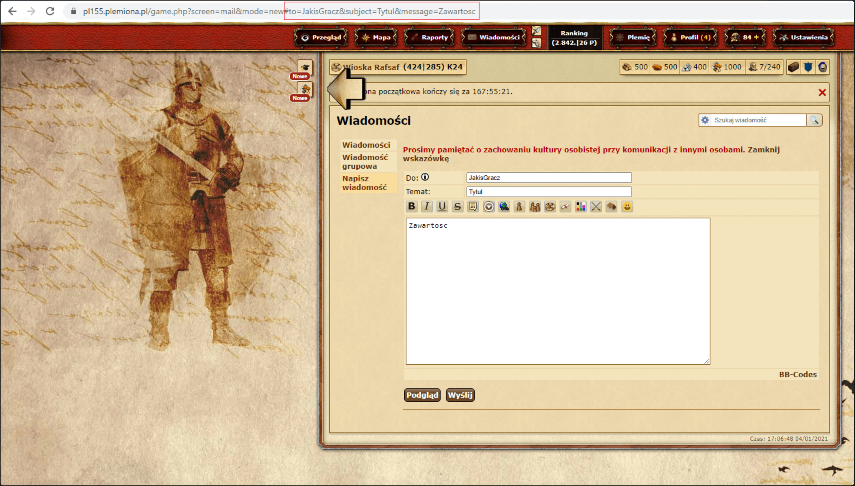 https://pl155.plemiona.pl/game.php?screen=mail&mode=new#to=SomePlayerName&subject=MyTitle&message=MyContent