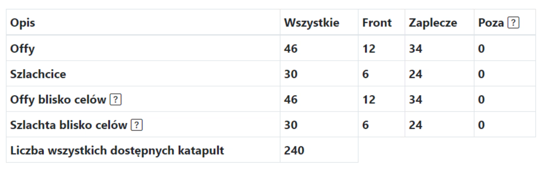 Megjegyzés, a táblázat két alsó sora csak akkor jelenik meg, ha kitöltjük a célpontokat, mivel az ott megadott mennyiségek attól függnek, hogy milyen célpontokat mentünk el (körülöttük számolják ezeket az offokat és nemeseket). Ezért az elején nullák lesznek ott. A rendelkezésre álló offok és nemesek számától függően folytathatja a célpontok megadását. Ezután újraszámolhatja az Elérhető egységeket.