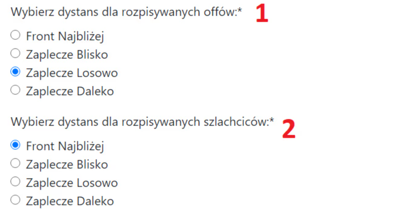 Qual opção no ponto 5 é melhor? Como de costume, depende. Para ações pequenas, provavelmente a segunda, opção padrão. Para ações muito grandes e massivas onde as ofensivas sempre serão divididas, a primeira opção é mais conveniente para os jogadores. Para outras ações, escolha o que for melhor para você. A opção padrão significa mais detalhes para o jogador (pois eles sabem exatamente qual escolta cada nobre tem), enquanto a primeira opção como uma única ordem significa menos detalhes e menos espaço ocupado.